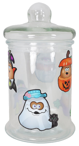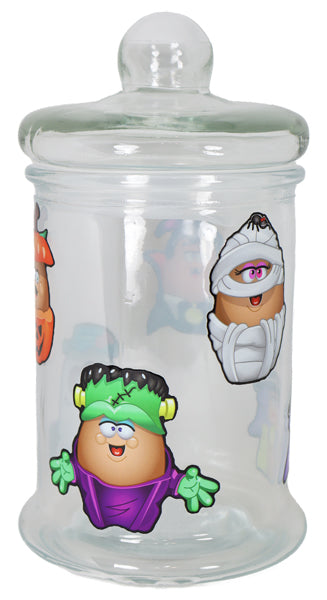 Decorative glass jar featuring six different classic Halloween nugget designs.